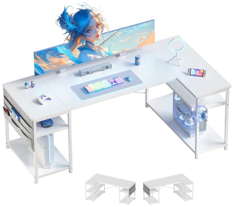 ゲーミングデスクとしてはもちろん、テレワーク用のデスクとしても使える汎用性の高さもポイント。L字型デスクは一般的に価格が高くなりがちですが、YeTomはAmazonで購入することがd系比較的安価なのもうれしいところですね。広々とした秘密基地感満載のカワイイホワイトデスク環境を実現したい初心者さんにおすすめです。白いL字型デスクは、お部屋全体を明るく見せ、おしゃれな印象を与えてくれますよ。