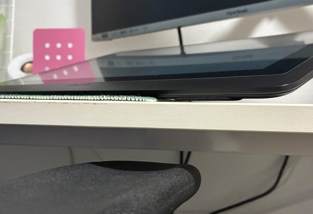 モニターアームをデスク天板の背面にマウントして複数のモニターを使いたいPCゲーマーは多いはず。一般的に学習机や、モニターアームの取り付けを考慮されていない作業机を購入してしまうと、背面に化粧板や金属製の骨組みが補強のためにつけられていたり、天板の厚みが薄くモニターアームをマウントできないこともあります。必ずデスクの天板背面のデザインはチェックして、モニターアームをクランプ(挟み込んでマウントする)できるデスクを探しましょう。